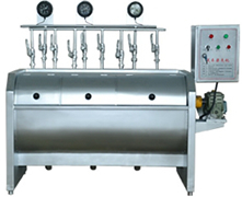 成衣染色機(jī)特點:1)本機(jī)適用于羊毛,滌綸,尼龍,人造絲等針織品的染整處理。 2)染液接觸之缸體均采用具有抗腐蝕的不銹鋼板制造,確保不污染織物,經(jīng)久耐用。 3)染缸內(nèi)壁及劃槳輪均有表面拋光處理,?椢锊皇軗p害。 4)按不同織物的染整要求及載重,可通過無段變速裝置來劃槳轉(zhuǎn)動速度。5)染整全部操作過程由起動至停止均由電箱內(nèi)按鈕操作,其染整時間可由電箱內(nèi)時間自動控制,染整時間可根據(jù)不同需求預(yù)先調(diào)節(jié)好。6)通過電箱內(nèi)的正反轉(zhuǎn)自動控制器,使染缸內(nèi)的劃槳輪倒順旋轉(zhuǎn),液體興織物正反流動變化,從而提高染整效果。 7)根據(jù)不同的染整工序要求,在缸底安裝直接及間接蒸氣喉管可達(dá)到加溫,保溫的作用。